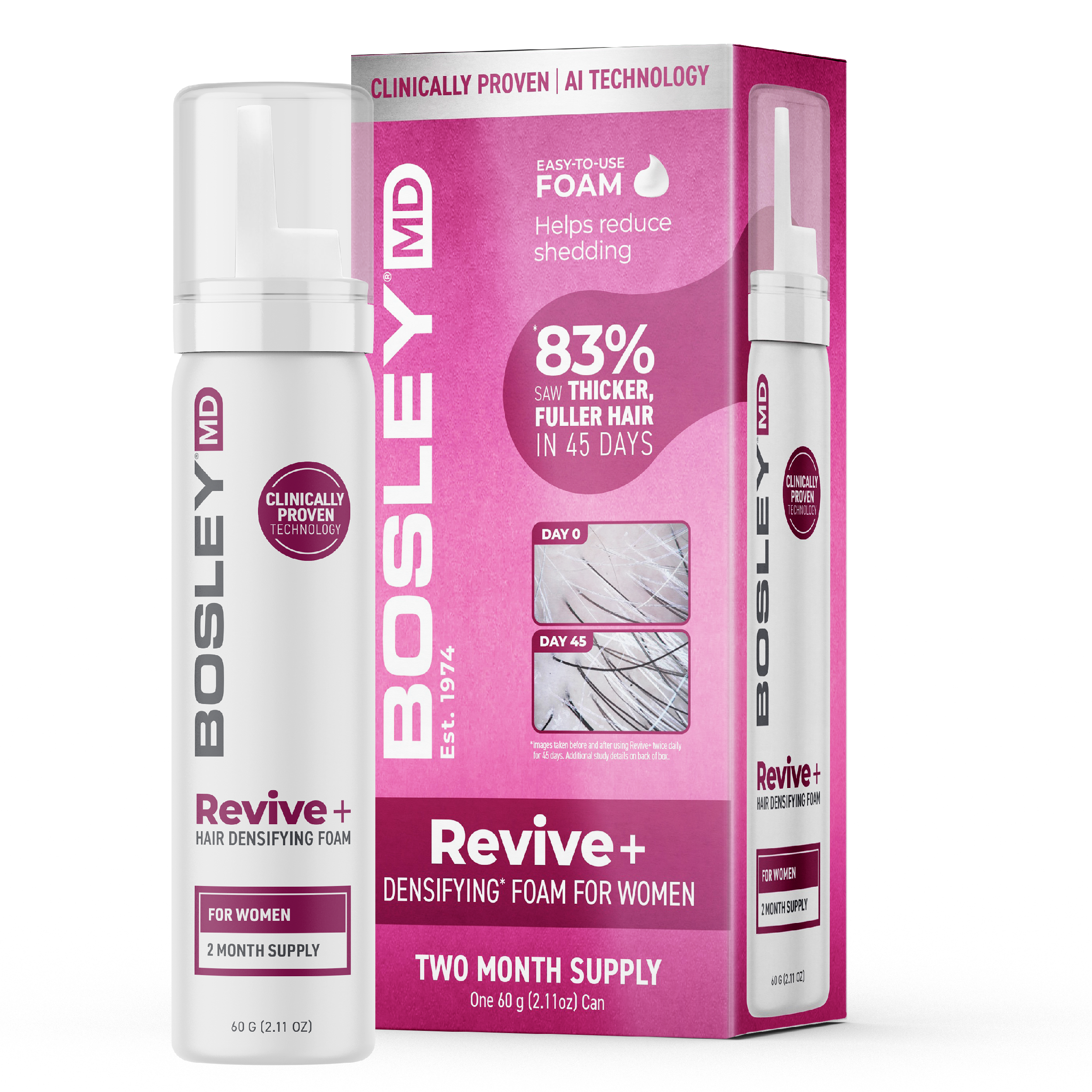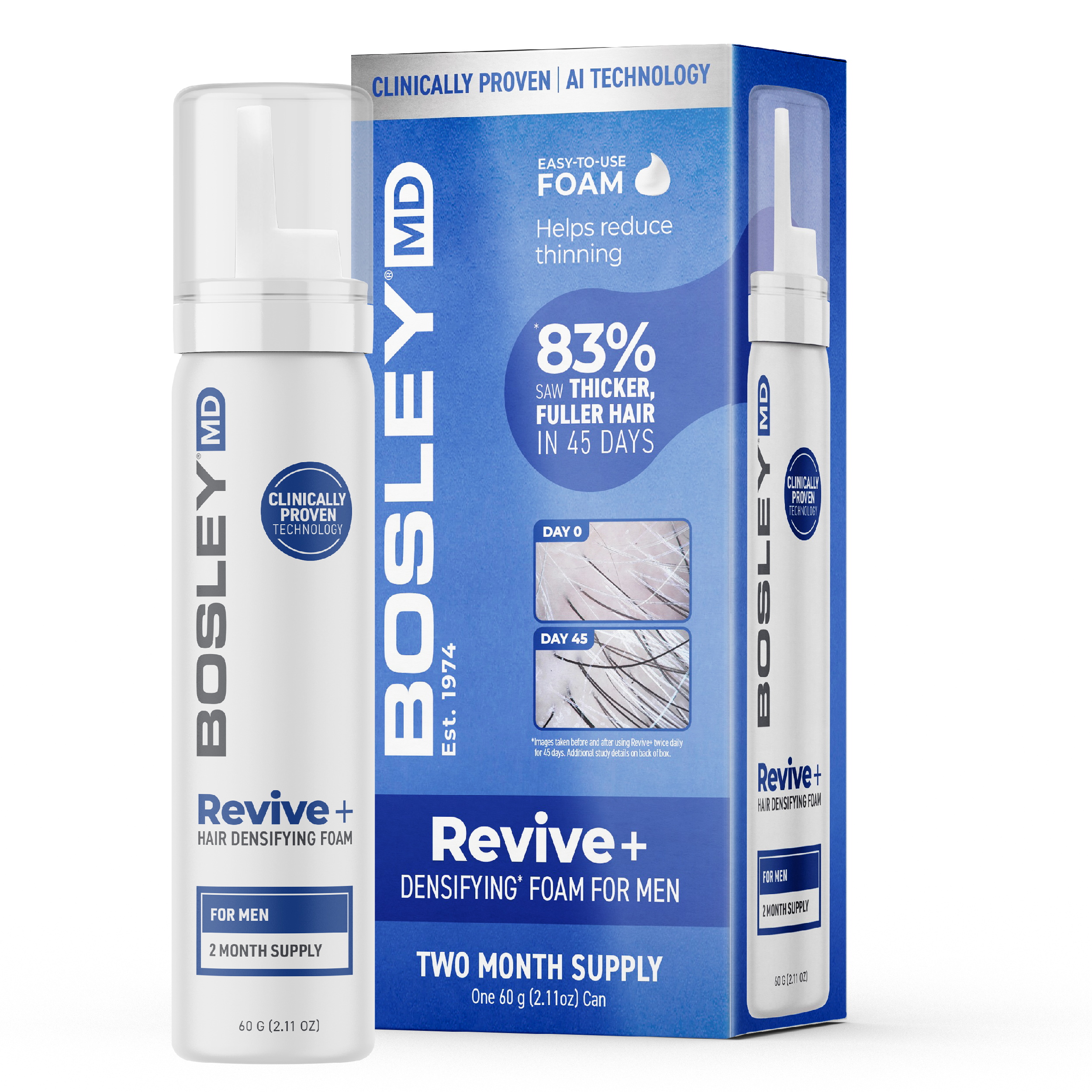 Regular price $59.99Sale price $59.99 Regular priceUnit price / perBosleyMD REVIVE+ Densifying Treatment Foam Get thicker, fuller-looking hair in as little as 45 days with this breakthrough hair growth technologyco-created by Bosley Doctors and Yuva...