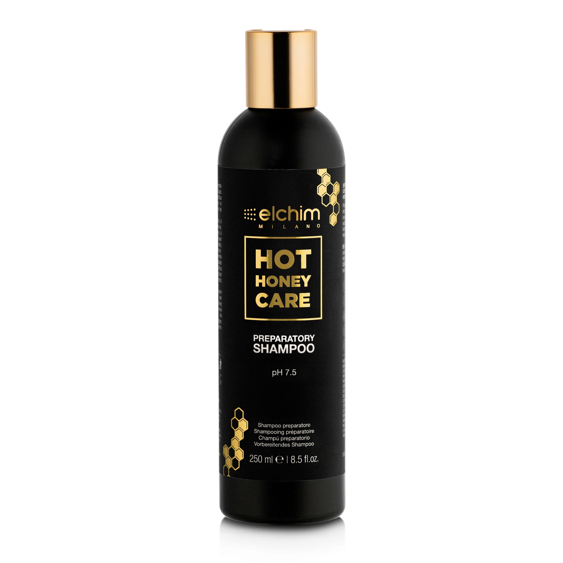 Hot Honey Care Preparatory Shampoo developed by Elchim laboratories is the preparatory shampoo that protects hair during blowout and amplifies the effects of the Hot Honey Care system.